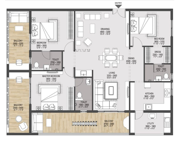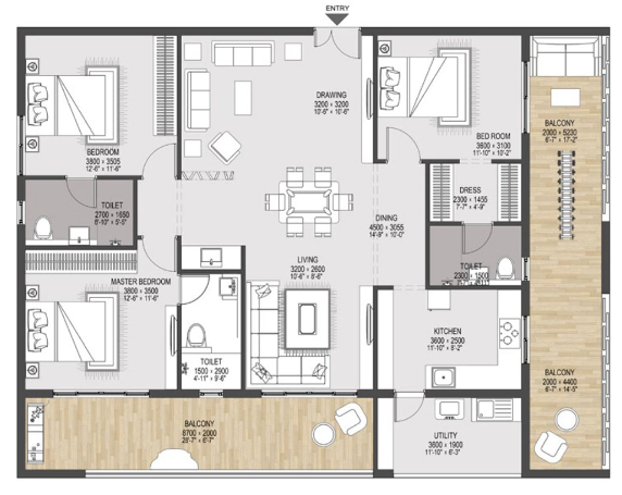 Urban Abode is spread over a total area of 2 acres and is a single tower high-rise apartment with 17-floors which has 230 units in total. The sizes of units are 1370, 1835, 2020, and 2210 Sq Ft. with respect to 2bhk and 3bhk.