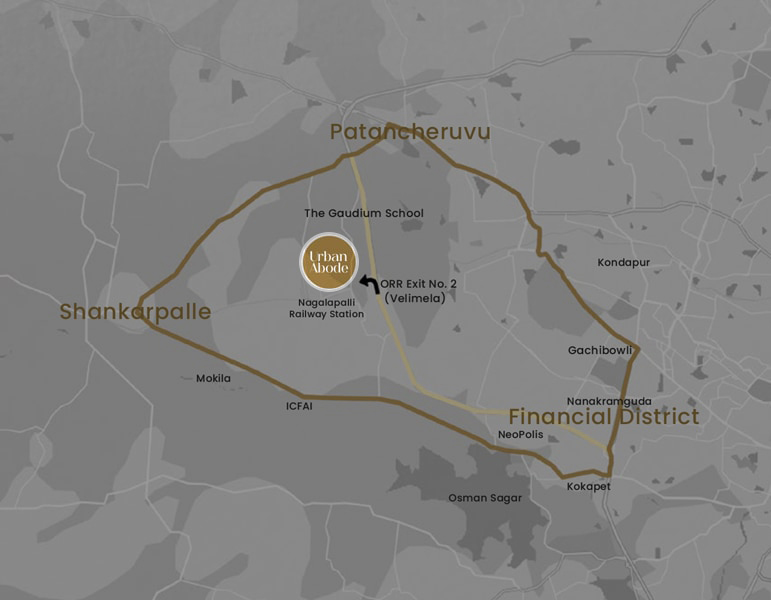 Urban Abode, the latest luxury residential development by Sree Chaitanya is located at Velimela (ORR EXIT #2), Hyderabad. The project gives the excitement of elegant architecture, prestige, and the chance for its residents to enjoy the perks of living in a calm and desirable location.